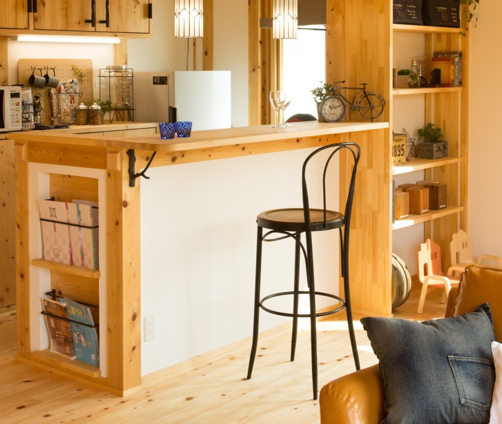 もともとはこのようなキッチンカウンターに腰壁が付いておりました。キッチンとダイニングを壁で仕切れるというのが特徴です。