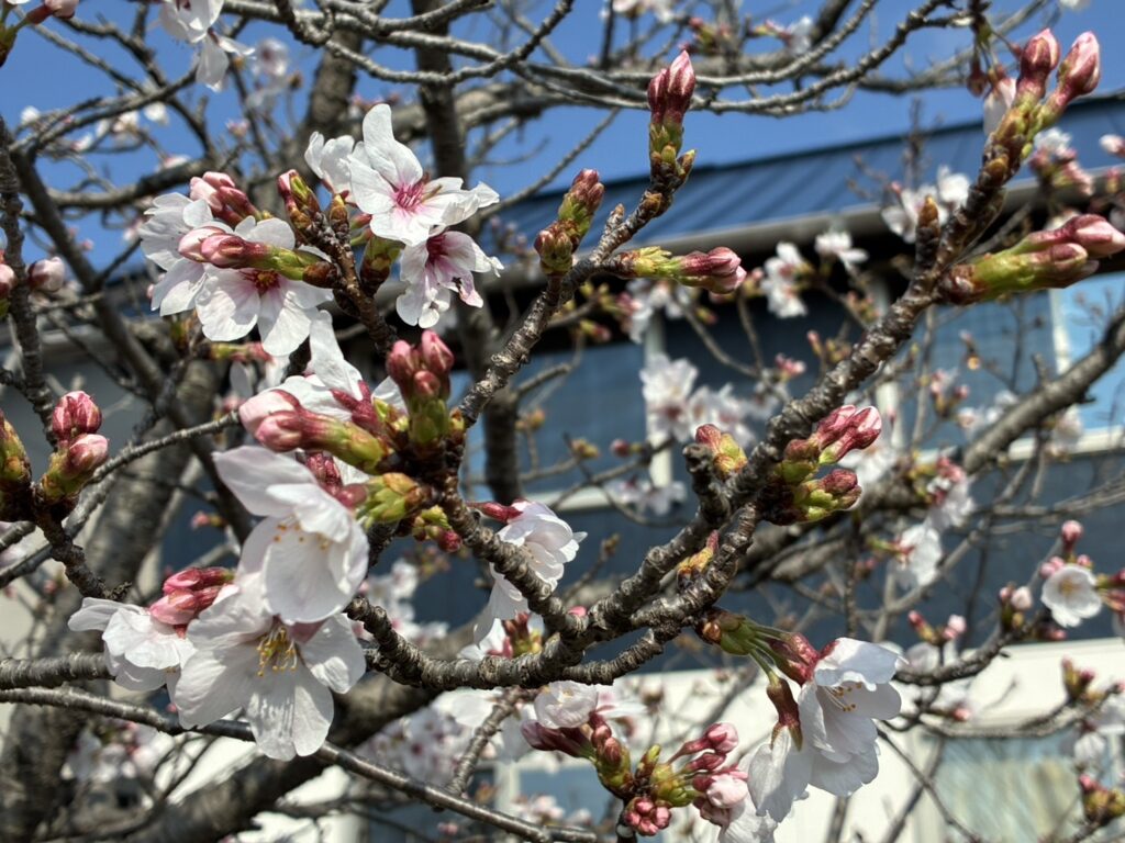 日に日に暖かくなり、事務所の窓から見える桜も少しずつ花を咲かせ始めました🌸