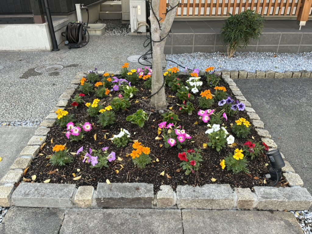 早島展示場の花壇に、お花を植えました🌺